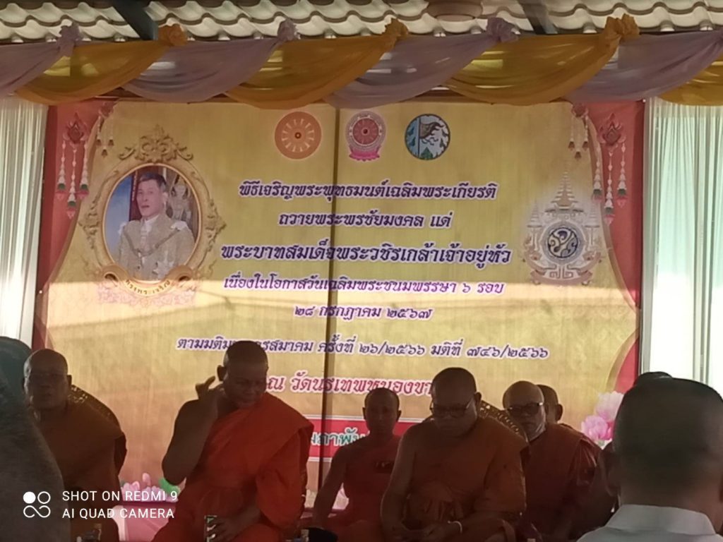 พ.ต.อ.พันธ์ยศ พีระยศวริศ ผกก.สภ.คอนสวรรค์ ร่วมพิธีเจริญพระพุทธมนต์เฉลิมพระเกียรติ ถวายพระพรชัยมงคล แด่ พระบาทสมเด็จพระวชิรเกล้าเจ้าอยู่หัว เนื่องในโอกาสวันเฉลิมพระชนพรรษา 6รอบ ณ ศาลาวัดนรเทพหนองขาม บ้านหนองขาม ต.หนองขาม อ.คอนสวรรค์ จ.ชัยภูมิ
