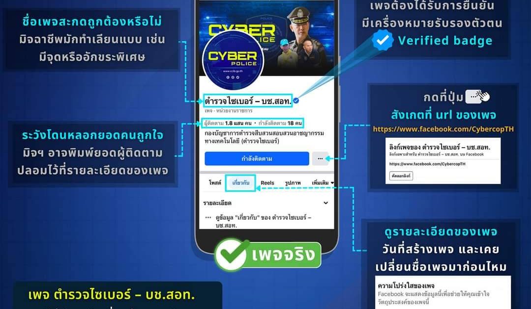 อย่าหลงเชื่อเพจปลอม มิจฉาชีพแอบอ้างตำรวจไซเบอร์