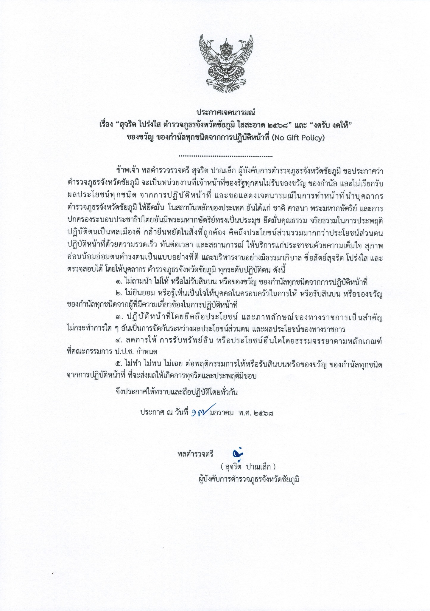 O18ประกาศนโยบายการต่อต้านการรับสินบนeng